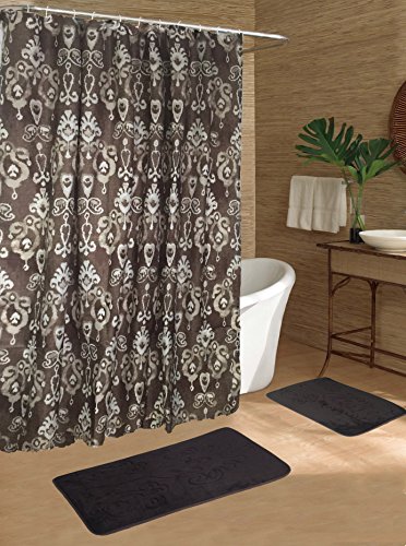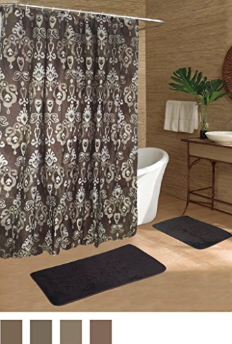 Beatrice Home Fashions 15 Piece Shower Curtain/Mat Set, Tacho Chocolate