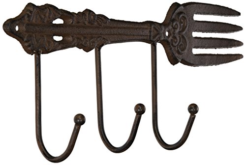 Cast Iron Wall Hanger For Kitchen | Vintage Fork With 3 Hooks | Decorative Cast Iron Kitchen Storage Towel Rack | 11.2 x 4.9"- With Screws And Anchors By Comfify -CA-1504-17-BR