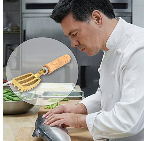 Enjoy delicious fish free of scales by removing them effortlessly with Kwizing Fish Scaler Brush. If you love fish, you know there's nothing more annoying and dangerous than trying to remove scales using a filet knife. That's why you need Kwizing Fish Scaler Brush that let you quickly and easily remove scales with little effort and no mess. Professional Quality Fish Scale Remover Handcrafted in Japan by Japanese artisans, our fish scaler has 32 brass serrated sawtooth for greatest coverage area. It has has an ergonomic wooden handle for a comfortable slip-resistant grip. Furthermore, the specially designed grooves will catch most loose scales so that the mess stays in the sink, not on your clothes. Enjoy Tastier Fish Whether you're an avid angler or just love a good fish dinner, there's nothing more important to your kitchen and your fishing box than the Kwizing Fish Scaler Brush. Easy to clean, highly durable, and with a comfortable grip and precise sawtooths that let you remove scales with ease, even in hard to reach places. You'll find that fish tastes far better when you don't have to worry about chewing into fish scales. Product Details: - Brass Tip with 32 serrated sawtooth