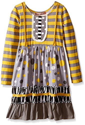 Charming knit dresses in whimsical prints imaginatively patched together to create clothes pretty enough for a portrait but comfortable enough for the playground.