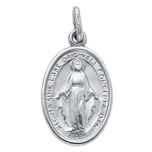 -. Title : 14k White Gold Religious Virgin Mary Medal