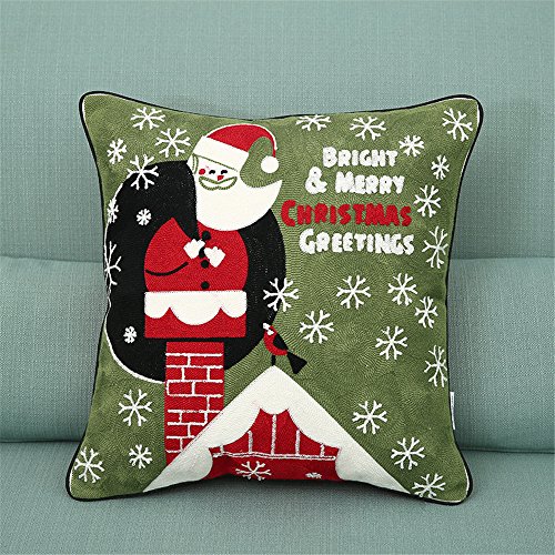 Christmas Pillow Covers 4 Pack, Snowman, Christmas Tree, Santa Claus, Merry Christmas Decorative Sofa Throw Pillow Case Cushion Covers 18 X 18 Inch, Cotton Linen
