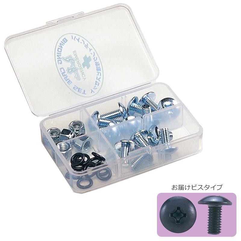 3種類の長さのビスにナイロンナット・ゆるみ止めロックリングをまとめたBOXセットです。 生産国:日本 ※サプライヤー直送品 ※2019年9月上旬入荷分予約受付中【商品名】バインディングケアセット トラス型セット(ブラック) SB08-201SE