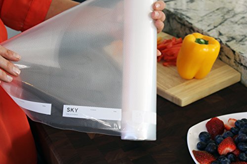 2 Rolls of Vacuum Sealer Bags designed by Fresh to be used by professional chefs for food storage and sous vide. Cut down on waste by using this BPA free bag roll to create a custom-length bag. You only need cut a piece to the length you need, seal one in end the vacuum sealer machine of your choice, and then fill with your delicious food. Thicker, more supple, and faster, our vacuum sealer bags perform better than Food Saver bags at a better price!