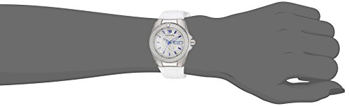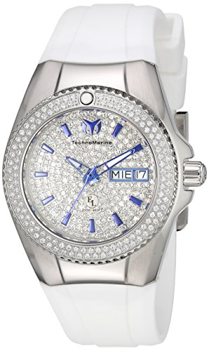 Silver Pave Dial Encrusted with White Crystals with Blue and White Hands and Blue Hour Markers; Luminous; Screw-Down Crown; Flame Fusion Crystal; Stainless Steel Case; White Silicone Strap