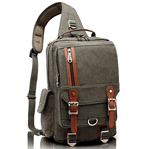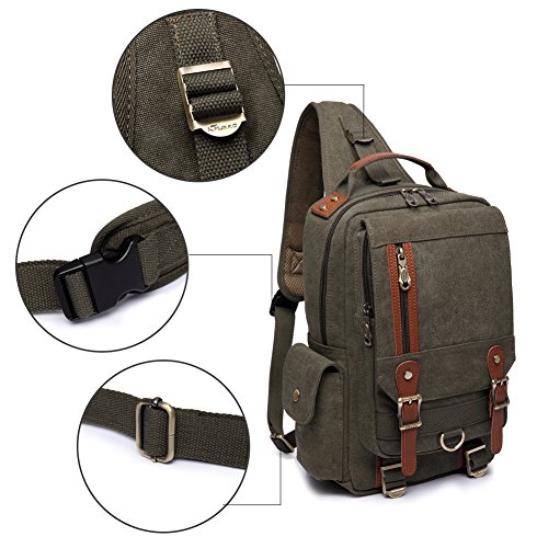 -. Title : KAUKKO Canvas Messenger Bag Cross Body Shoulder Sling Backpack Travel Hiking Chest Bag