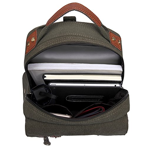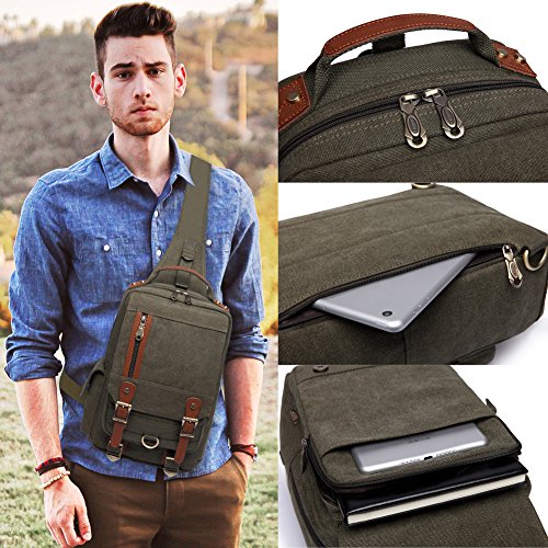 -. Feature : MATERIAL: SOFT and DURABLE Washed Canvas with Leather Decoration. The messenger sling bag is made of a very durable looking canvas material on the outside ,more luxurious material inside the main compartment. / SIZE: 8.66*12.99*3.54 in (L*H*W), light weight at 1.9 pounds 0.865kg, The shoulder bag can fit a iPad to 10 inches. but this canvas leather chest bag is not a large bag, So kindly refer the size dimensions before placing your order. / MULTI-PURPOSE USES: The canvas bag has 2 * handy side zipper pockets; 1 *roomy rear pocket;1 *zipper pocket is in the front flap;1*main compartment with double zipper;1 *snap side pocket;1 *inner laptop pocket; 2* inner small pocket. The bag can be either carried with the hand handle or adjustable shoulder strap. it is a great size to take to a day trip or shopping. / ADJUSTABLE SHOULDER STRAP: The straps is adjustable and ultra-comfortable across your back and chest. It can act as a single-shoulder bag/sling bag, or a cross-body bag for use. the strap can be also reached to 50 cm / Ideal for outdoor sports (hiking, camping, climbing, cycling, etc) and travel use.