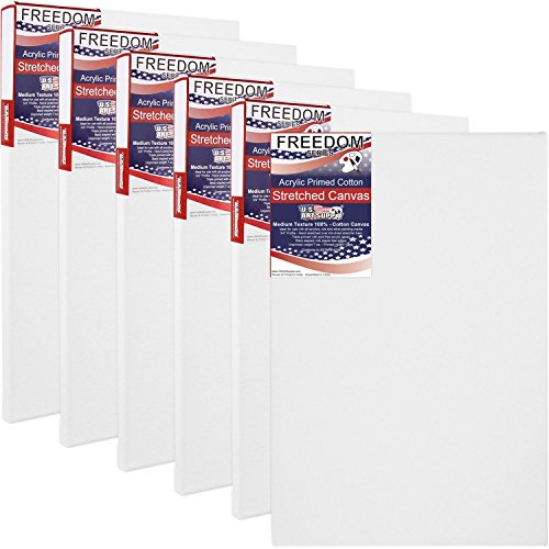 US Art Supply 16 x 20 Inch Professional Quality Acid-Free Stretched Canvas 6-Pack - 3/4 Profile 12 Ounce Primed Gesso - (1 Full Case of 6 Single Canvases)