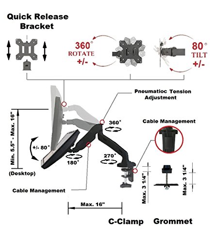 With a versatile heavy-duty steel desktop C-Clamp mounting can be a Grommet Mounting as well. easy to install in minutes. The Max. Max. thickness for mounting is 3 1/4".