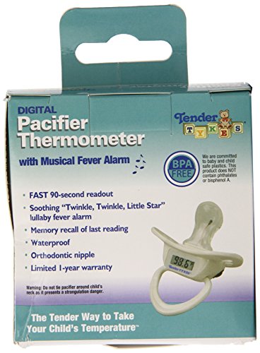 The tender way to take your child’s temperature! The soothing, familiar pacifier-style thermometer calms the child. For children 5 years or younger