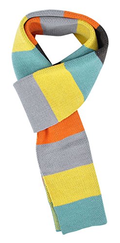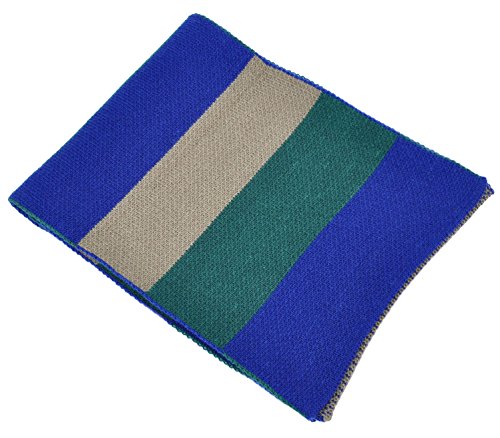 Product Description Ultra-warm, thick knit striped 3-tone colored scarf. Long versatile length allows you to wrap it as a single or double loop around neck. One-size fits most adults.