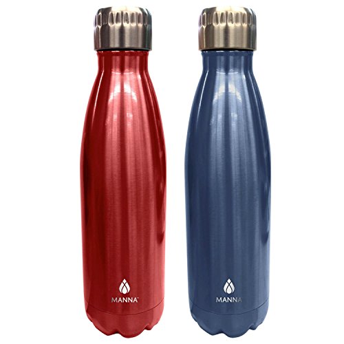 -. Brand : Manna -. Feature : Double wall vacuum insulated / 18/10 high grade stainless steel / Keeps liquids up to 24 hours cold and 12 hours hot / BPA & Lead free / Includes two 25 oz (750 ml) bottles -. ProductGroup : Kitchen -. ProductTypeName : KITCHEN -. Title : Manna Vogue Insulated Bottles - 25 oz - 2 Pack
