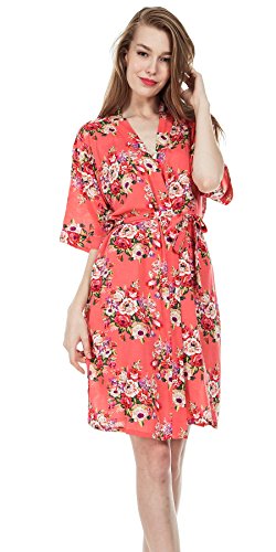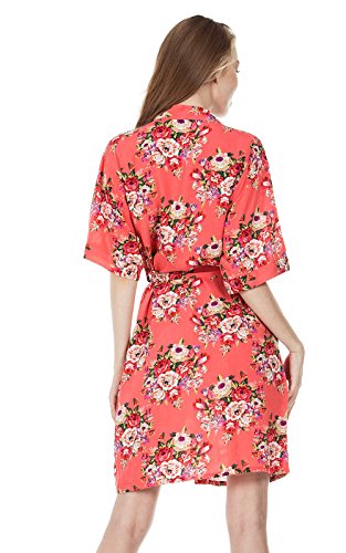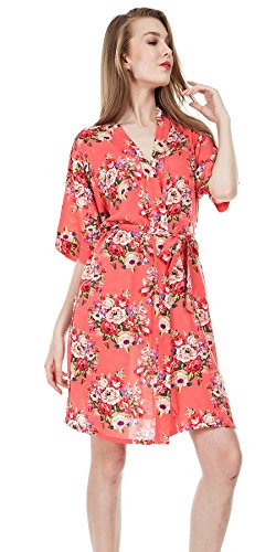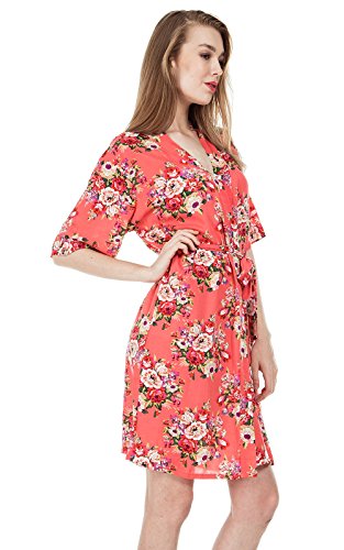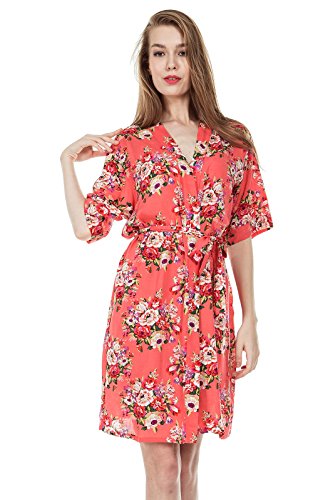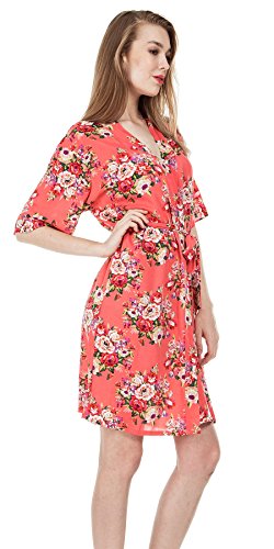 Missfashion Womens Cotton Kimono Robe Floral Wedding Nightgown (S,Pink)