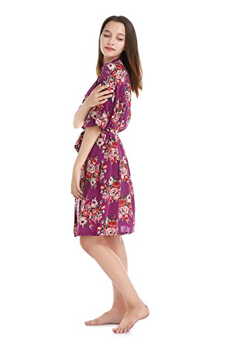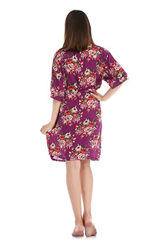 Missfashion Womens Cotton Kimono Robe Floral Wedding Nightgown (S,Purple)