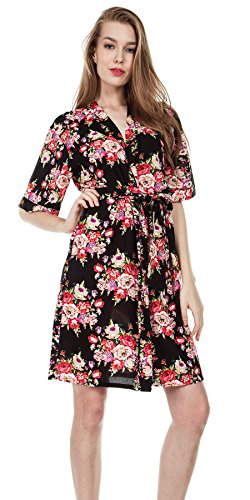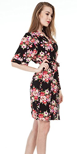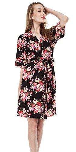 missfashion Womens Cotton Kimono Robe Floral Wedding Nightgown (Medium, Black)