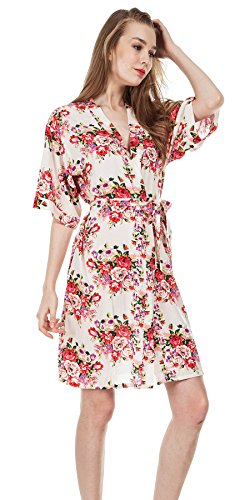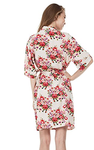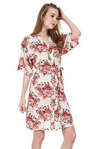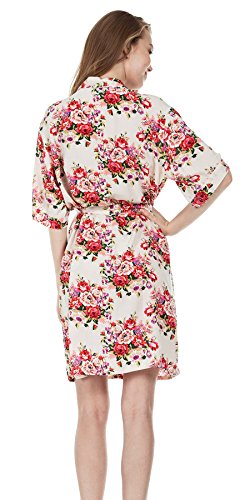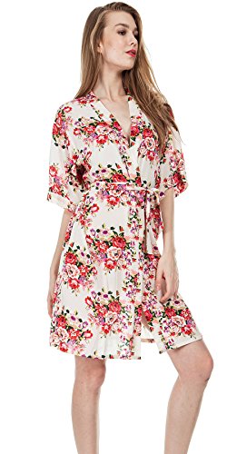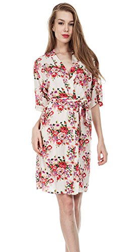 Missfashion Womens Cotton Kimono Robe Floral Wedding Nightgown (Medium, White)