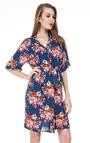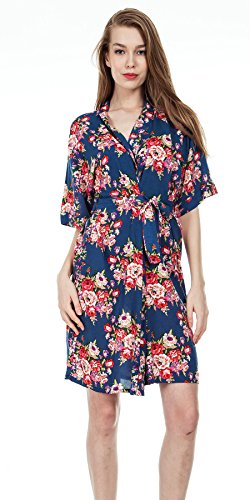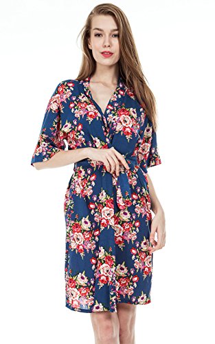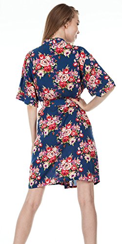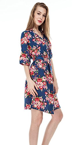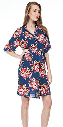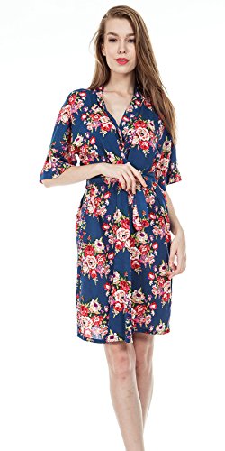 Missfashion Womens Cotton Kimono Robe Floral Wedding Nightgown (Medium, Blue)