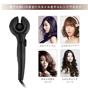 いちいち自分で巻いていく面倒は不要で、オートカールシステムを採用されるので、髪を挟むだけで自動で巻き取り、美しいカールを素早く作れます。テクニックに自信が無くても大丈夫です。カールアイロンで髪を巻くと綺麗なカールができて幸せな気分になります。巻き髪はエレガントで明るいイメージを作ってくれ、美しい巻き髪は人の目を惹きつけます。