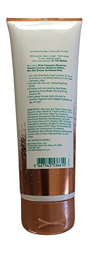 Studio : Bath Body Works Publisher : Bath Body Works Binding : Misc. Product Description Life's more beautiful at the beach! Infused with luxuriously rich shea butter, our Ultra Shea Body Cream provides 24 hours of nourishing moisture. With soothing aloe butter, pampering cocoa butter, nourishing coconut oil and more shea than ever before, our non-greasy formula melts into skin to provide all day, all night hydration 0