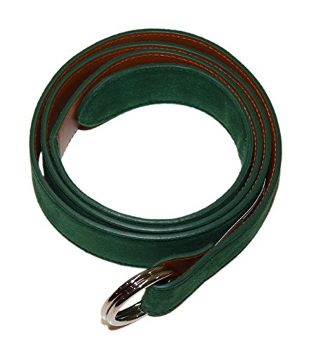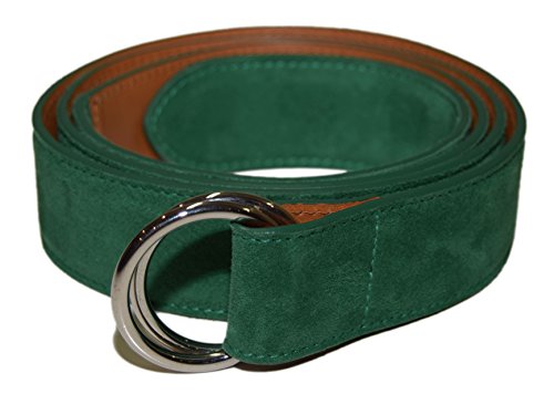 Polo Ralph Lauren Women Suede Leather O-Ring Belt Green Brown Silver Italy Large