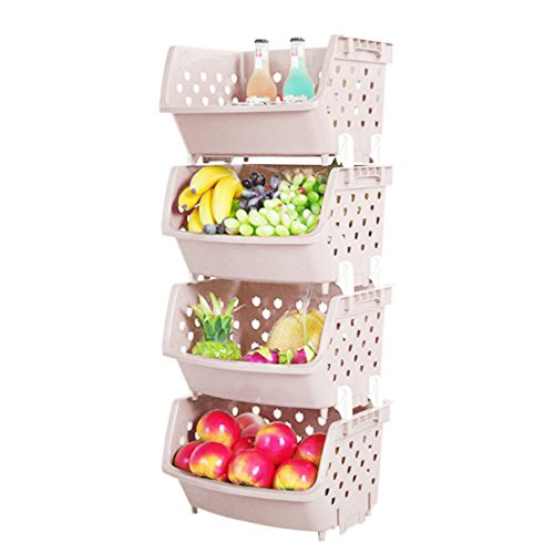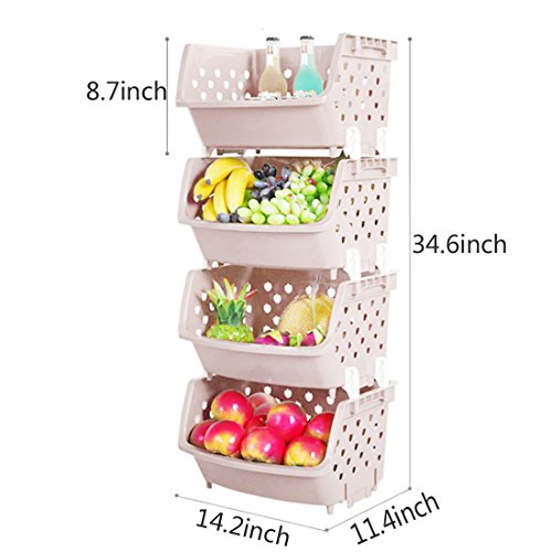4Pack Market Baskets YIFAN Storage Basket Stacking Baskets Organizer for Fruits, Vegetables, Pantry Items Toys - Khaki