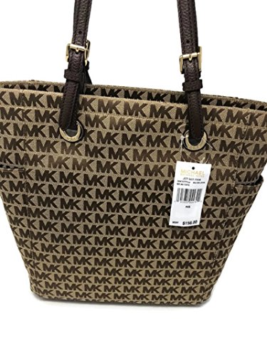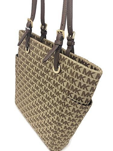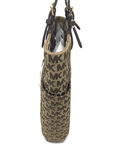 Michael Kors Jet Set Signature Medium Tote Bag Side Pockets Handbag Beige/Ebony/Java