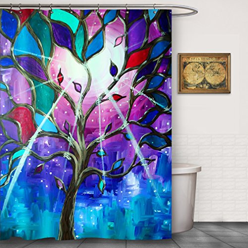 Tree of Life Fabric Shower Curtain by FOOG Glitter Light Art Painting Waterproof Mildew-Resistant Home Bath Decoration-Blue Red Aqua (70"Wx78"L)