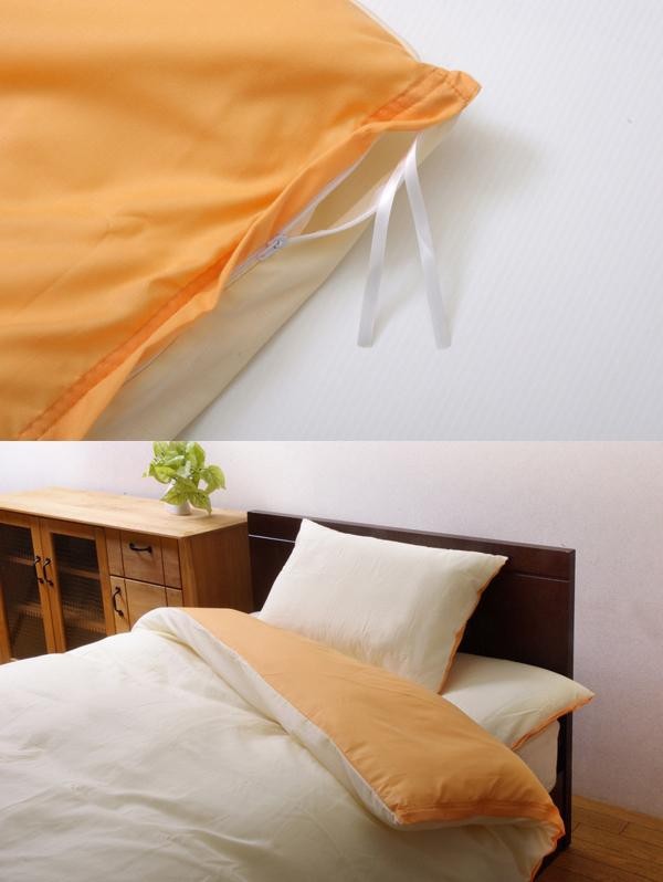 サラッとした肌触りのリバーシブルタイプの掛け布団カバーです。季節を問わず、オールシーズンご使用頂けます。縦方向にファスナーが付いているためスムーズな出し入れが可能です。また、お布団とカバーがズレにくいよう四隅に固定ヒモを付けております。 |