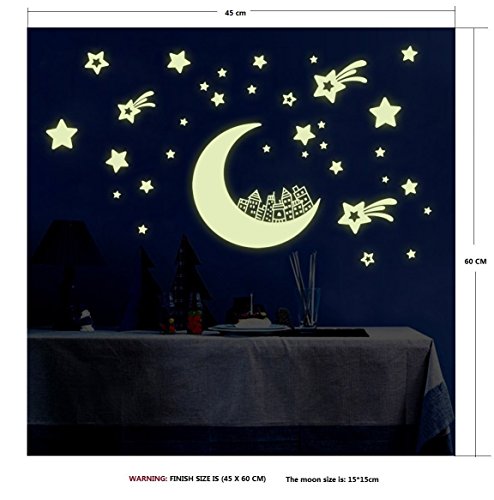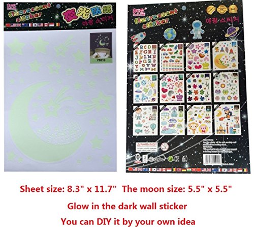Amaonm® Removable DIY Glow in the Dark Luminous Light Moon Stars Wall Decals Stickers Home Art Decor Wall Decorative for Girls Babys Bedroom Study Room Play Room, Sheet Size:21*29.7cm.
