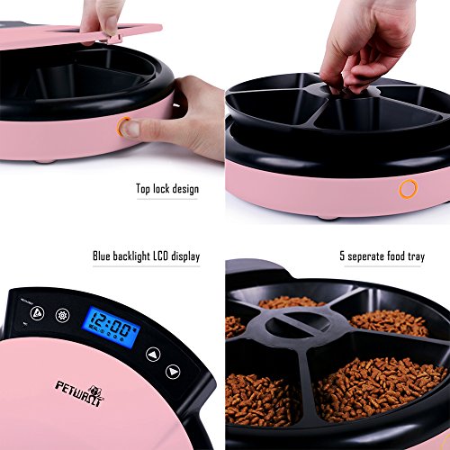 -. Title : Petwant 5-Meal Automatic Pet Feeder for Dogs & Cats with Dual Power Supply and 10s Voice Recorder, Programmable up to 5 meals per day, 240ml x 5 for Dry& Semi-wet Food