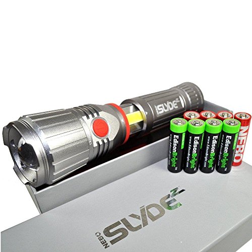 Nebo 6267 Slyde Z 4750 LUX LED flashlight / 250 Lumen LED Worklight 6267 Two Pack and 8 X EdisonBright AA alkaline batteries bundle