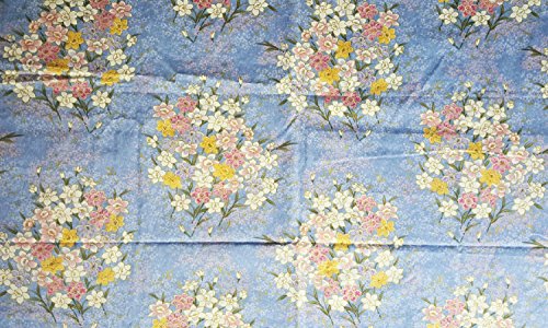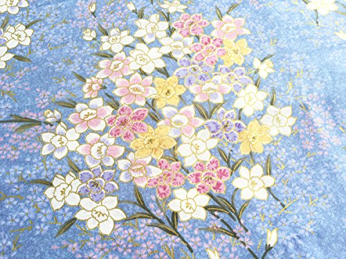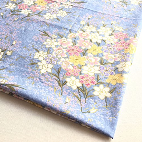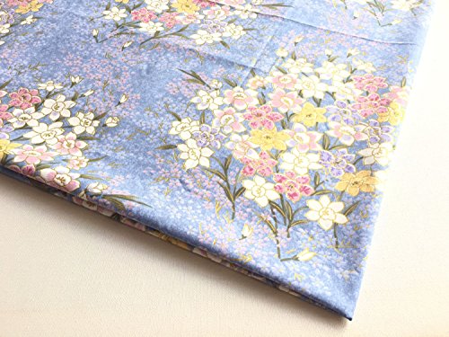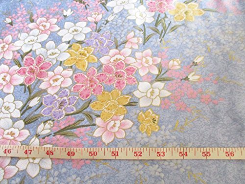 Japanese Kimono Pattern Blue River of Sweet Flower in Beautiful Spring, Lilly and Sakura Cotton 36 by 36-Inch Wide (1 Yard) - (JP026)