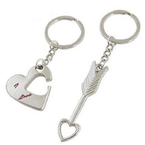 FUNLAVIE Lover His Her Keychain Keyring Couples - Cupid Arrow & "I Love You" Heart & Key 4EVER