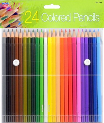-. Feature : 24 colored pencils for beginning artists and kid crafts. / Set includes all the basic colors and they are packed in a rigid plastic storage pouch with 2 button close flap to keep them organized. / Pencils are round wood barrels, pre-sharpened and measure a full size 7" Long. / Non-Toxic. Not a toy. For ages 6 and up. / Made in Taiwan.