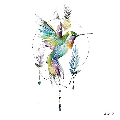 WYUEN 5 Sheets Watercolor Birds Hummingbird Fake Tattoo Waterproof Temporary Tattoo Sticker for Women Men Body Art 9.8X6cm FA-217