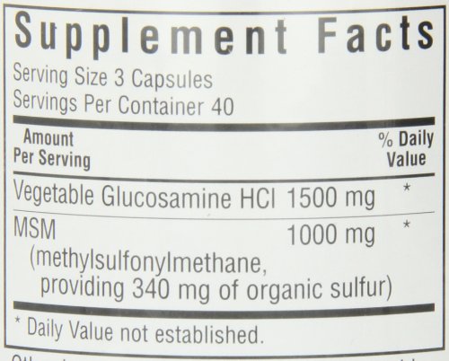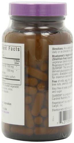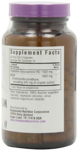 Product Description Bluebonnet's Vegetarian Glucosamine MSM V Capsules combine a synergistic and truly vegetarian blend of glucosamine hydrochloride derived from corn and pure patented OptiMSM. 0