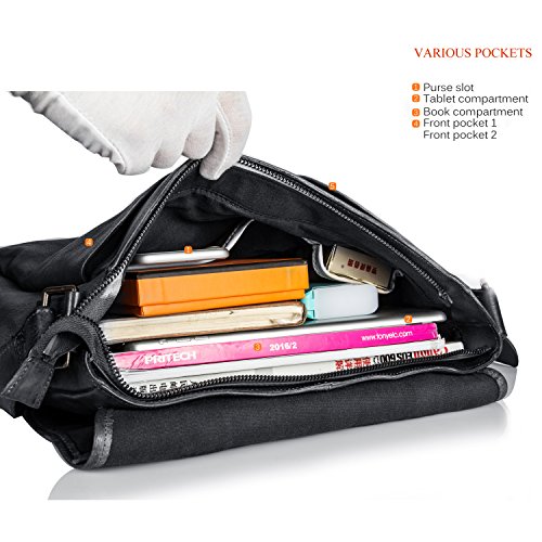 -. Feature : Dimensions:13.7 x 9.8 x 3.5 Inch. A reasonable size bag for carrying daily use items like tablet,book,cloth,phone,notebook, etc. / Cow Genuine Leather. Specially design processing makes the leather more exquisite. / Canvas. Durable and High quality. high density Canvas provides the function of water-resistance and scratch-proof. / Never allow high temperature and cut with knife. Keep the bag dry always. This Genuine Leather is easy to be scratched, Use a dry cloth to wipe, the scratch will disappear. It will be more and more shining in daily use. / Two roomy front pocket for keeping water bottle and umbrella. Convenient for your journey.