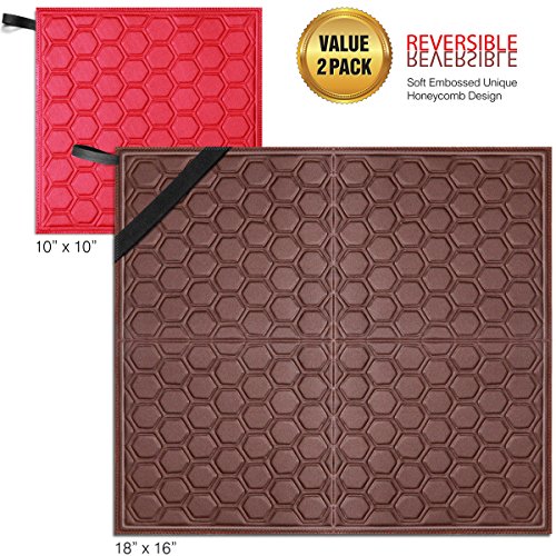 - ★ BEAUTIFULLY EMBOSSED DESIGN - Each dish drying pad is made of an innovative metric 66 material with embossed honeycomb designs which adds elegance to your kitchen counter. The honeycomb design also helps to absorb water quickly, drying your kitchen wares faster than other dish drying mats.