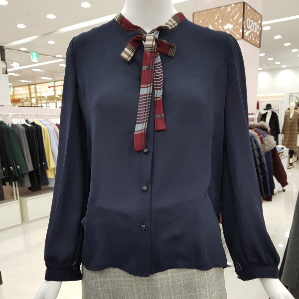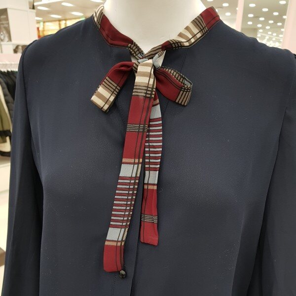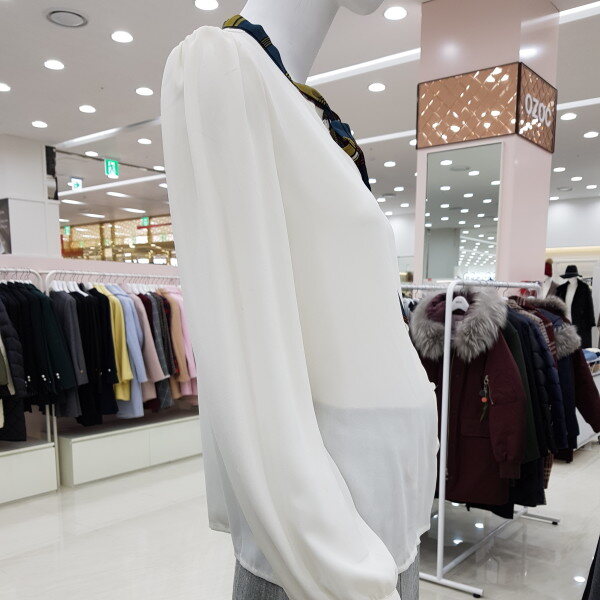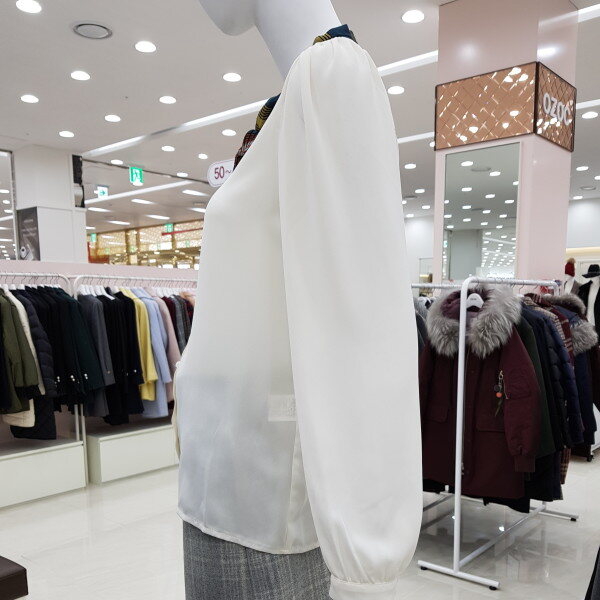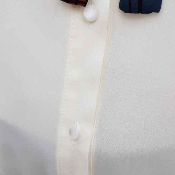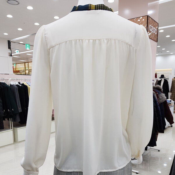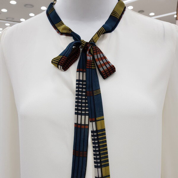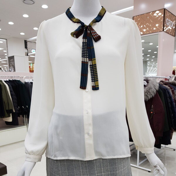 배색리본이 포인트가 되는 하늘하늘한 블라우스에요~가장 기본적인 스타일의 블라우스로 여러가지 룩에 매치 가능하고, 어깨와 소매에 잡힌 주름이 여성스러워요다만 아이보리컬러는 컬러특성상 비침이 있으니 이너와 함께 입어주세요~