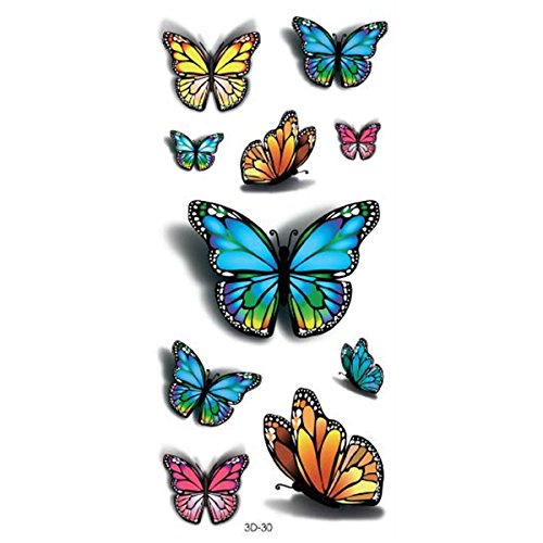 WYUEN 5 Sheets 3D Butterfly Temporary Tattoo Sticker Women Fashion Body Art Men Fake Tattoo Paper 19X9cm 3D-30