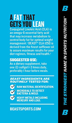ReleaseDate : 2015-05-21 Studio : Beast Sports Publisher : Beast Sports Binding : Health and Beauty Product Description Initially touted for its anti-cancer benefits, Conjugated Linoleic Acid (CLA) has come to be sought after for its ability to aid in fat loss and improve overall body composition. This unique form of linoleic acid falls into the Omega-6 category and is naturally derived from your favorite multi-stomach, ruminant mammals (e.g. cows and kangaroos). 0