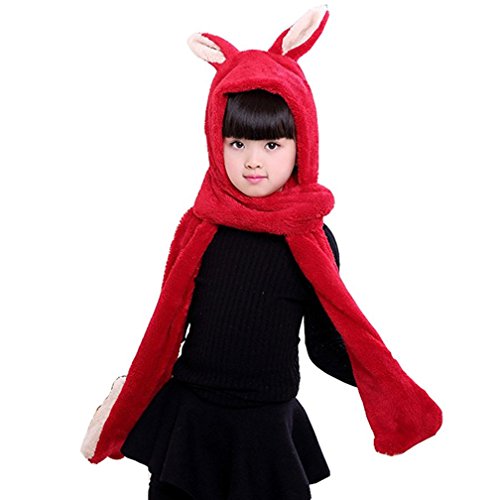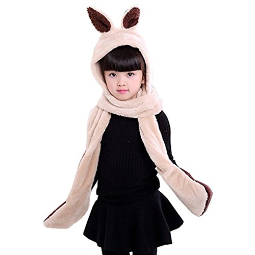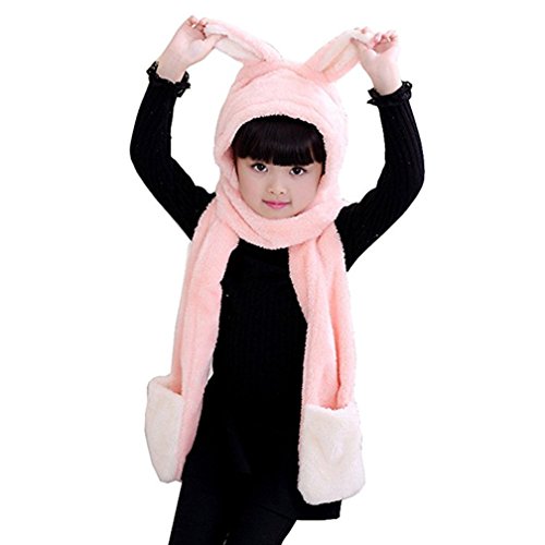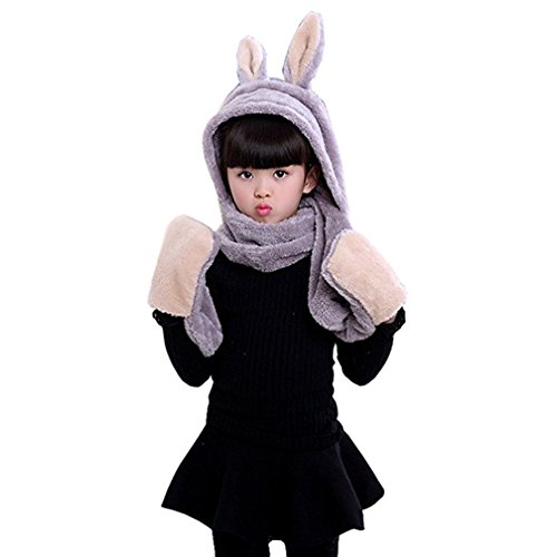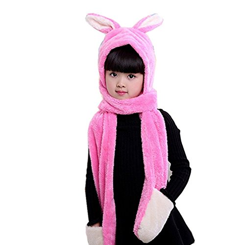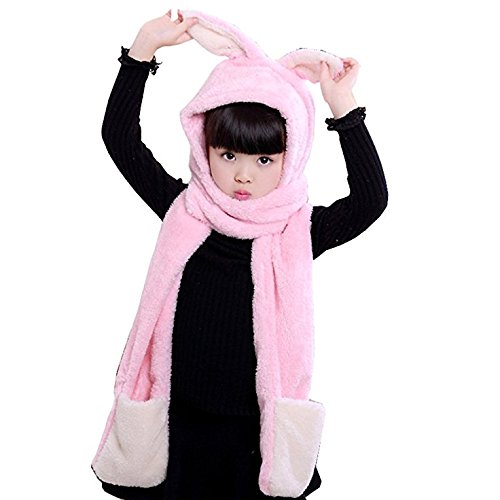 | (Fighting to Achieve)/Accessories/Cold Weather Accessories/DIRECT FROM USA/Girl's Cartoon Hats Scarf Gloves 3 In 1 Winter Warm Long Hooded Neckerchief With Pocket |
