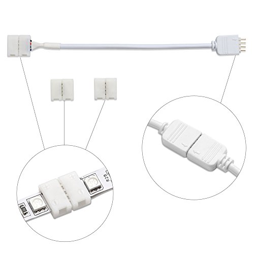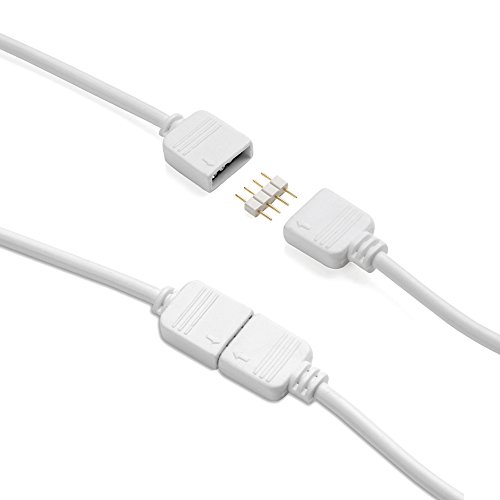 LE 1pc SMD 5050 RGB Strip Light Connector Cable + 2 Pcs 4-Pin 10mm Wide Connectors, Gapless Strip to Strip, Seamlessly Extend LED RGB Strip Lights