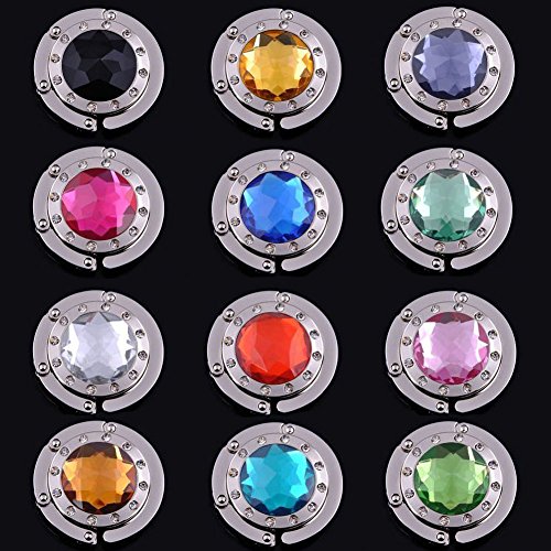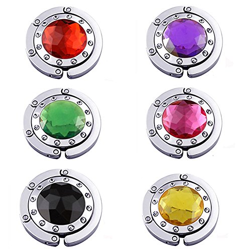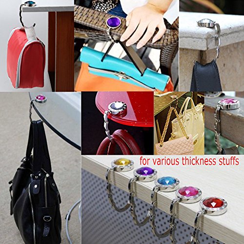 Colorful Purse Hooks Crystal Diamond Folding Section Storage Handbag Hook Hanger Holder