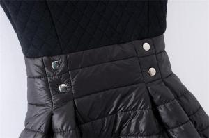 フレアスカート ミニ丈ワンピース ウエストリボン 異素材ワンピース ノースリーブ オシャレ 秋冬 ダウン プチプラ