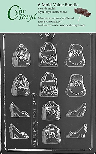 CybrTrayd D107-6BUNDLE Purses and Shoes Chocolate Candy Mold with Exclusive Copyrighted Chocolate Molding Instructions, Small