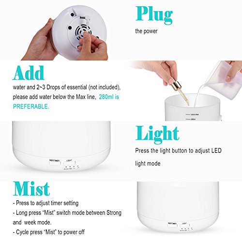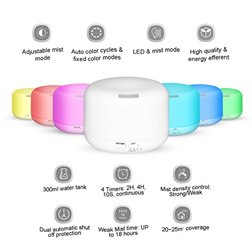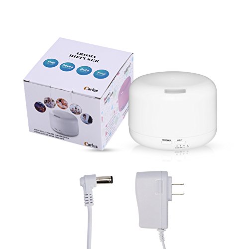 2017 Update Carlus 300 ml Aroma Diffuser, Ultrasonic Cool Mist Humidifier With Three Safety Protection System/Up to 11 Hour/ 2 Mist Mode /7 Color Led /12V White