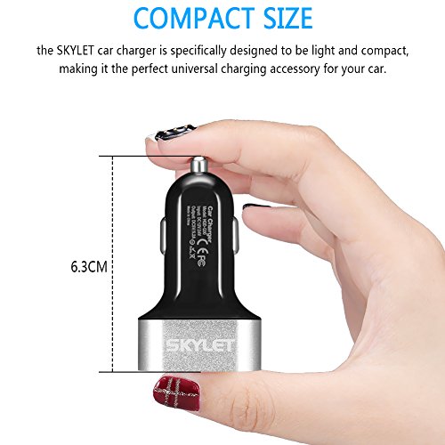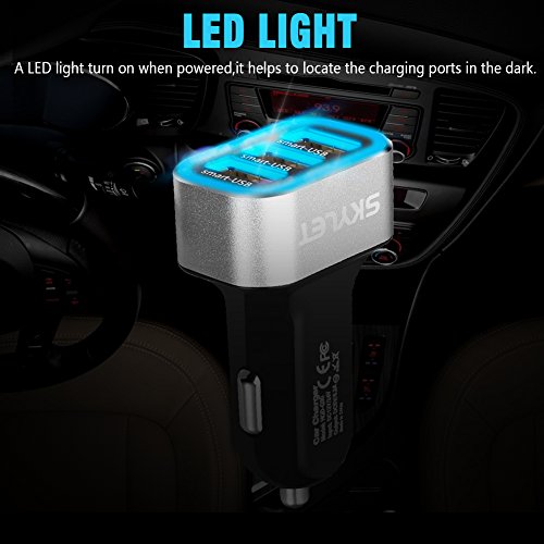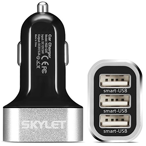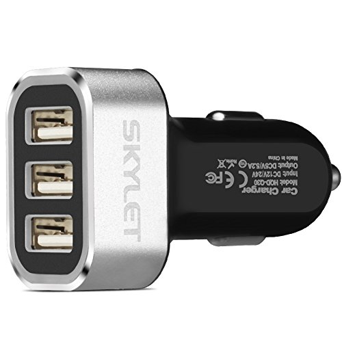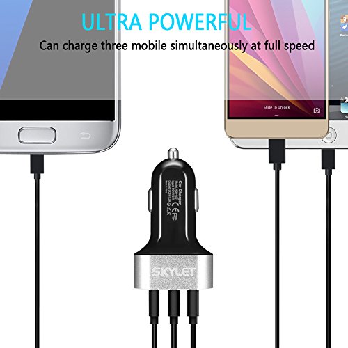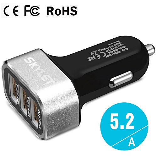 Car Charger Adapter, SKYLET 5.2A/26W USB 3 Port Universal Car Charger with 3ft Type C Cable for Galaxy S8/S8 Plus Huawei P9/P9 Plus LG V20 (Black/Silver+Black Cable)