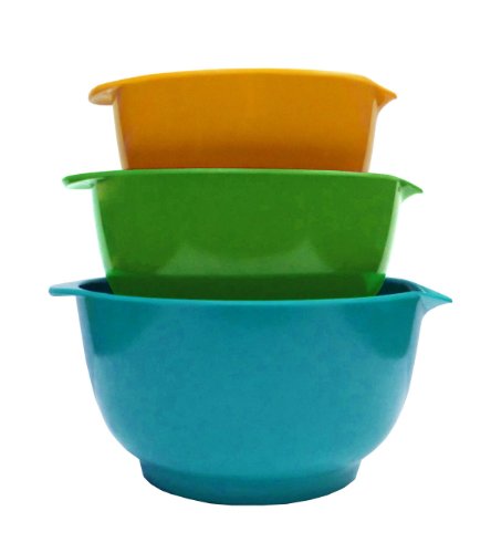 GHP 3-Piece Melamine Mixing Bowl Set with Non-Skid Silicone Bottoms, Orange/Lime/Sky Blue