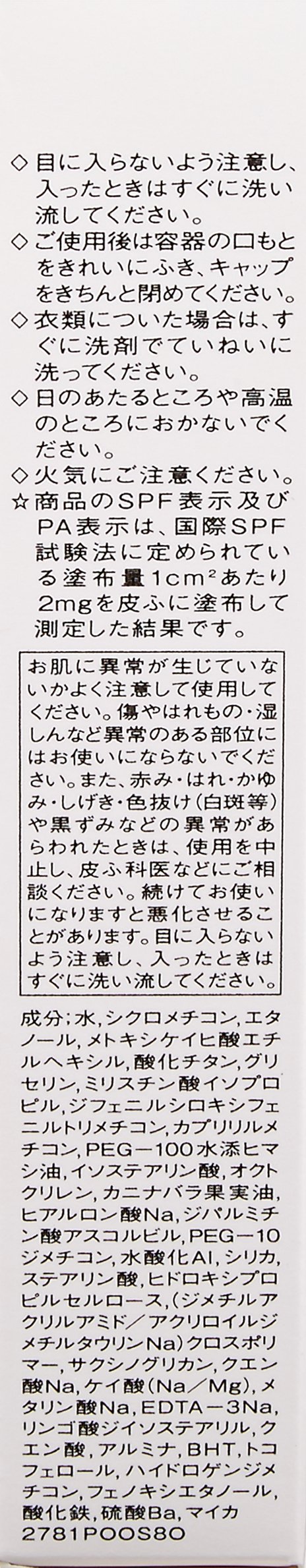 ※ The SPF display and PA display of the product is the result of measuring 2 mg / cc / m 2 of coated amount as specified in the International SPF Test Method.